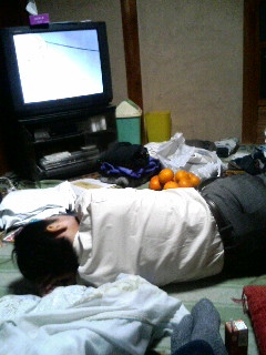 写真はだらけ親父。居間なんだけどむちゃくちゃ汚いなぁ。